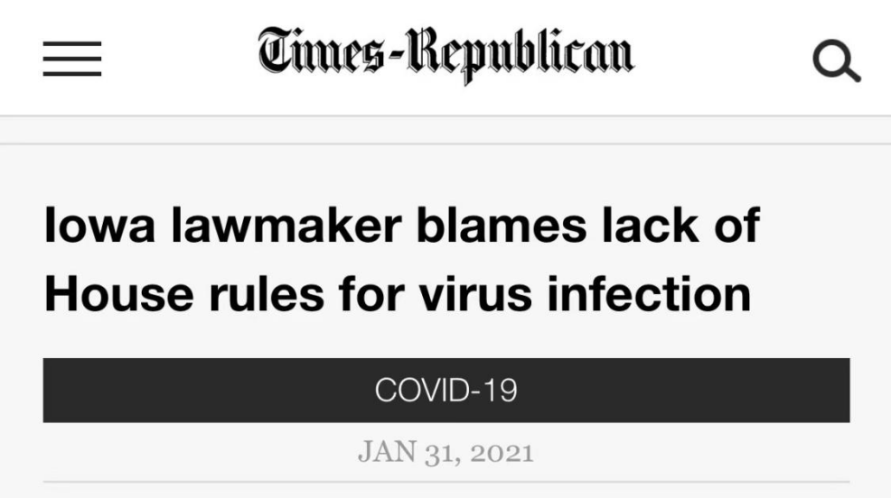 △美媒《共和时代》1月31日报道,爱荷华州立法人员谴责州议会缺乏相关防疫措施
