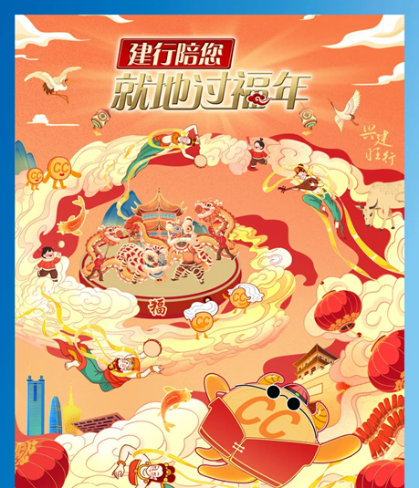“建行陪您就地过福年”活动,分为“处处过福年,千里共团圆,开启新福年”三个阶段,期间将推出“炸年兽大挑战”“团圆距离”“放飞孔明灯”等20余项趣味抽奖游戏、“龙支付一元购”“一元享年货”“车主专享”“养老专享”等针对不同人群而设计的专属福利礼包,以及贷款、理财、保险、基金、贵金属、信用卡等领域丰富多样的金融产品和惠民折扣服务。