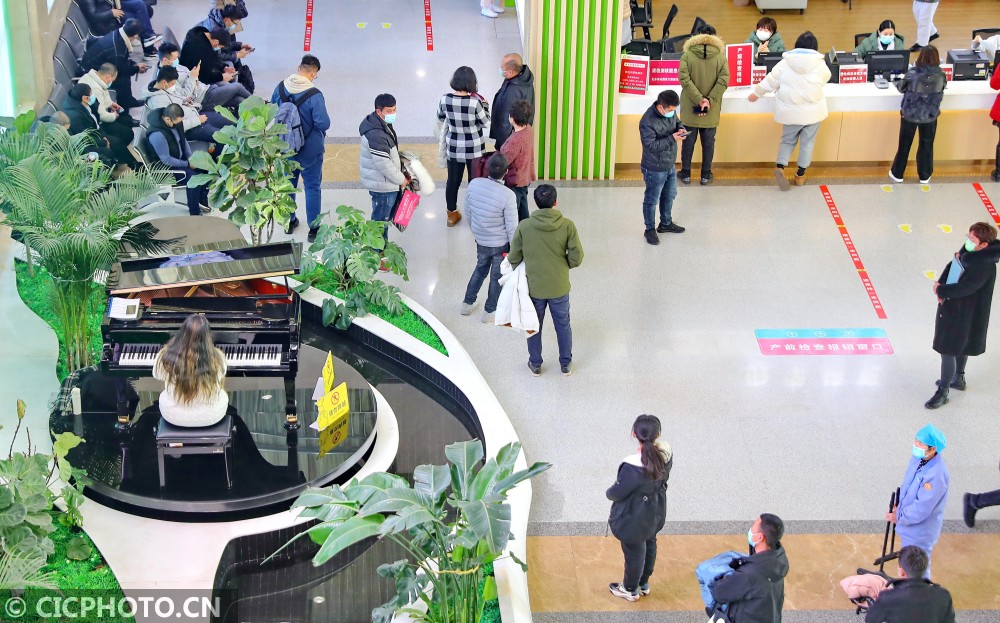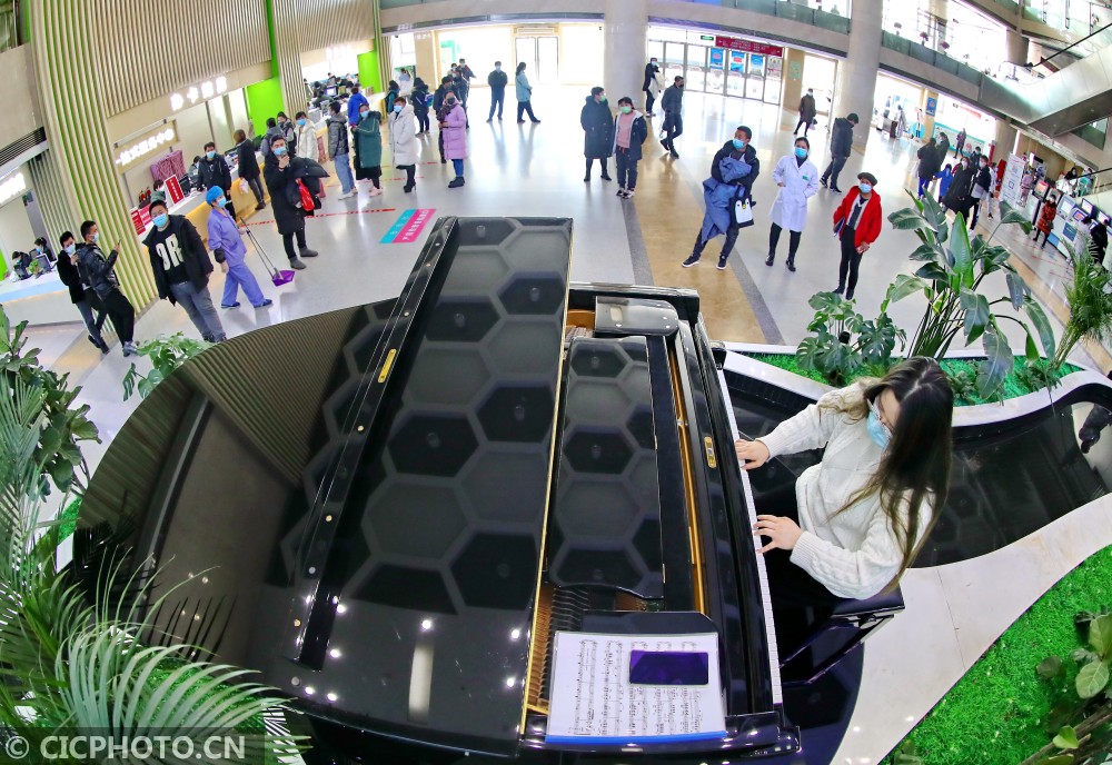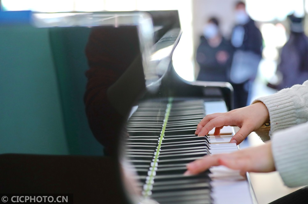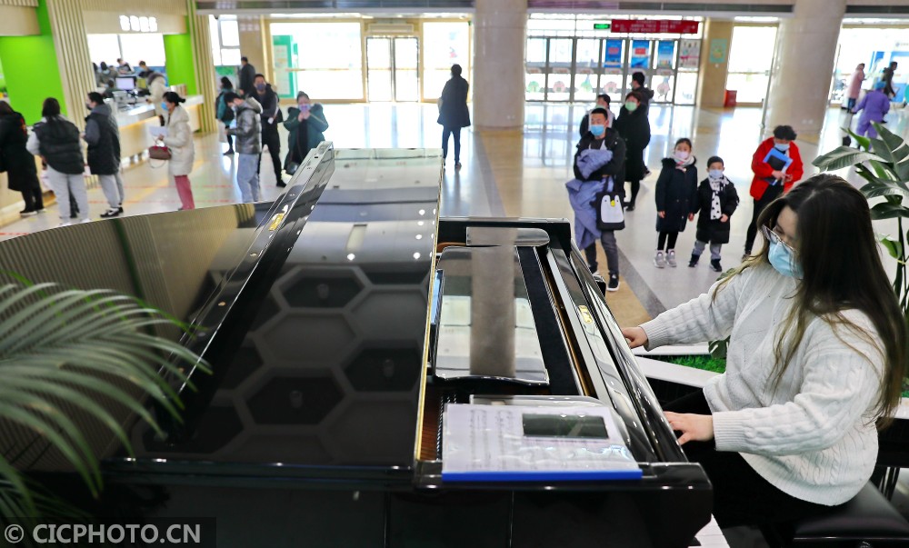 以上图片:2021年2月1日,河北省秦皇岛市一医院的志愿者在演奏钢琴曲。CICPHOTO/曹建雄 摄