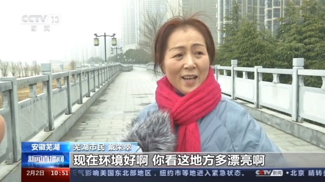芜湖市民 戴荣翠:现在环境好啊,你看这地方多漂亮啊,水多清啊,树都成了树林了,空气好,环境也好,看到芜湖市变化这么好,我们非常高兴。