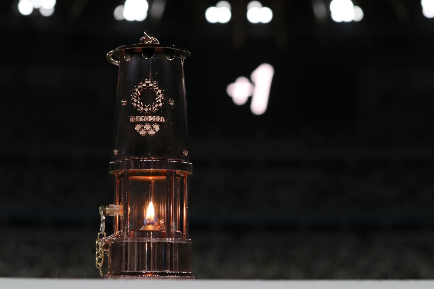 这是在日本东京奥林匹克体育场举行的东京奥运会倒计时一周年活动上拍摄的奥运圣火火种(2020年7月23日摄)