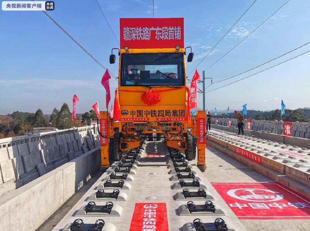 2月1日上午,随着一组500米长轨缓缓铺入赣(州)深(圳)高铁汕湛高速特大桥无砟轨道板上,标志着赣深高铁广东段正式开始铺轨。