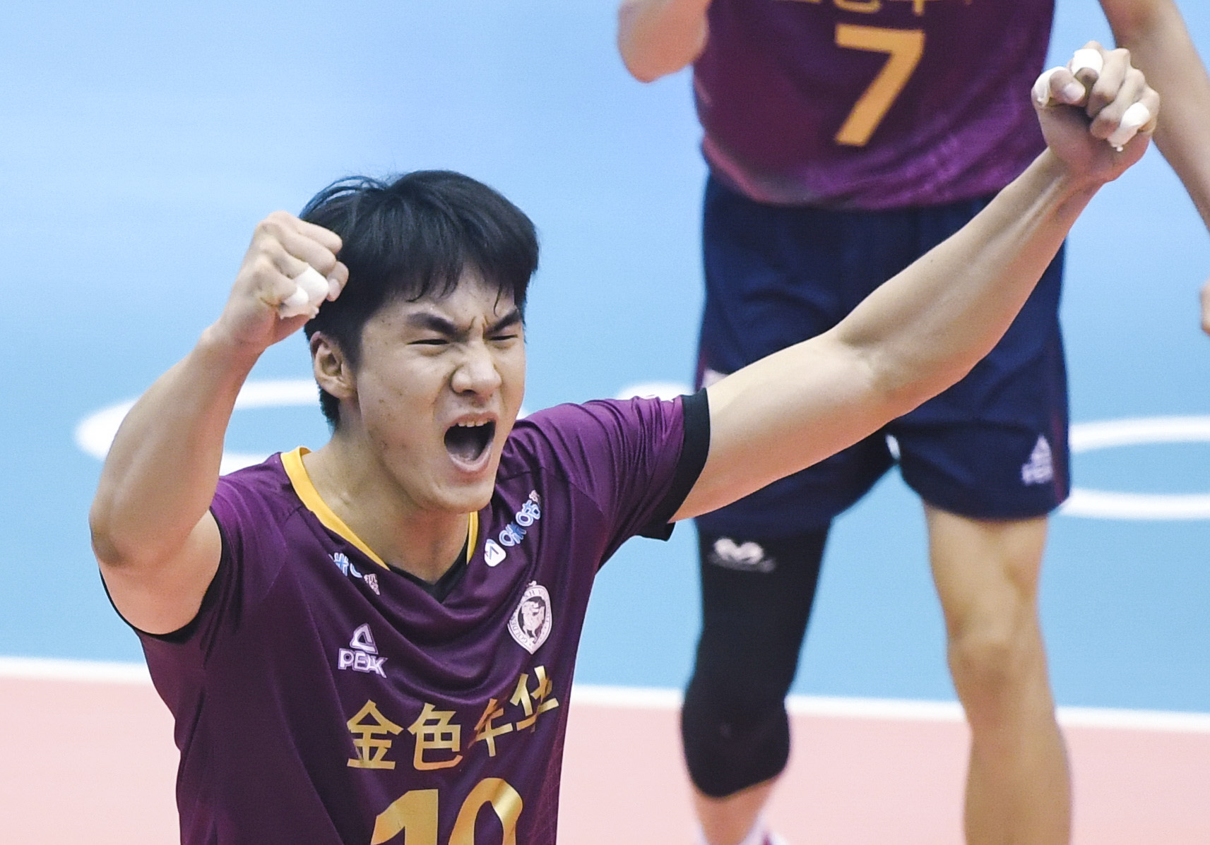 上海金色年华队球员武弸智在比赛中庆祝得分。新华社记者 朱旭东 摄