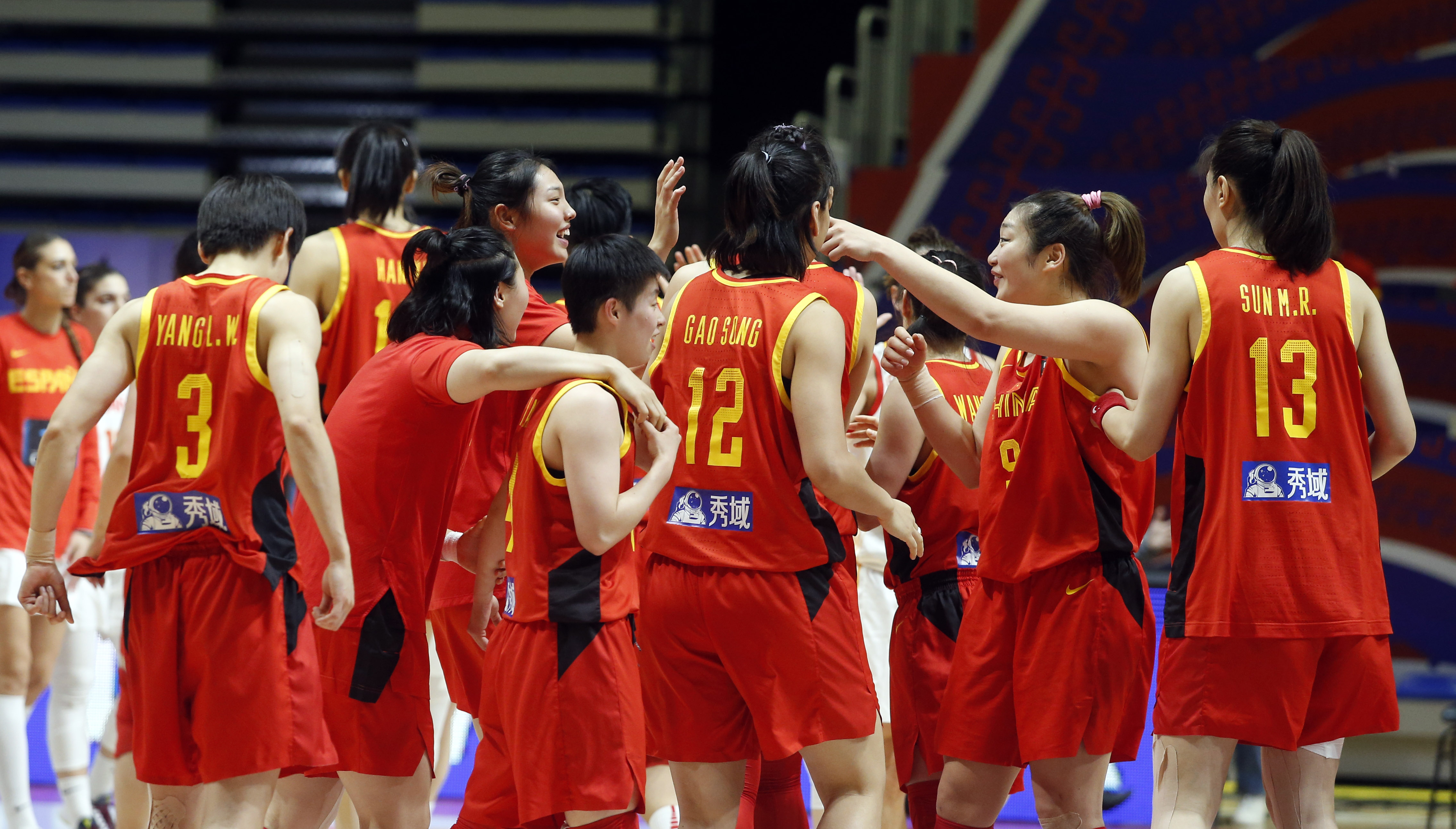 中国女篮球员在场边庆祝获胜。新华社发(普雷德拉格·米洛萨夫列维奇摄)