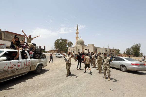 去年6月4日,利比亚民族团结政府军在的黎波里南部地区庆祝收复整个的黎波里。(新华社)