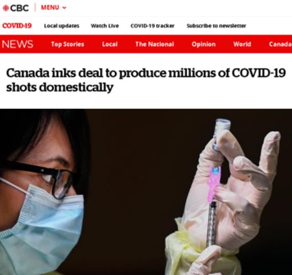 △加拿大广播公司(CBC)报道加拿大政府与诺华疫苗签订购买合同并在本国生产疫苗