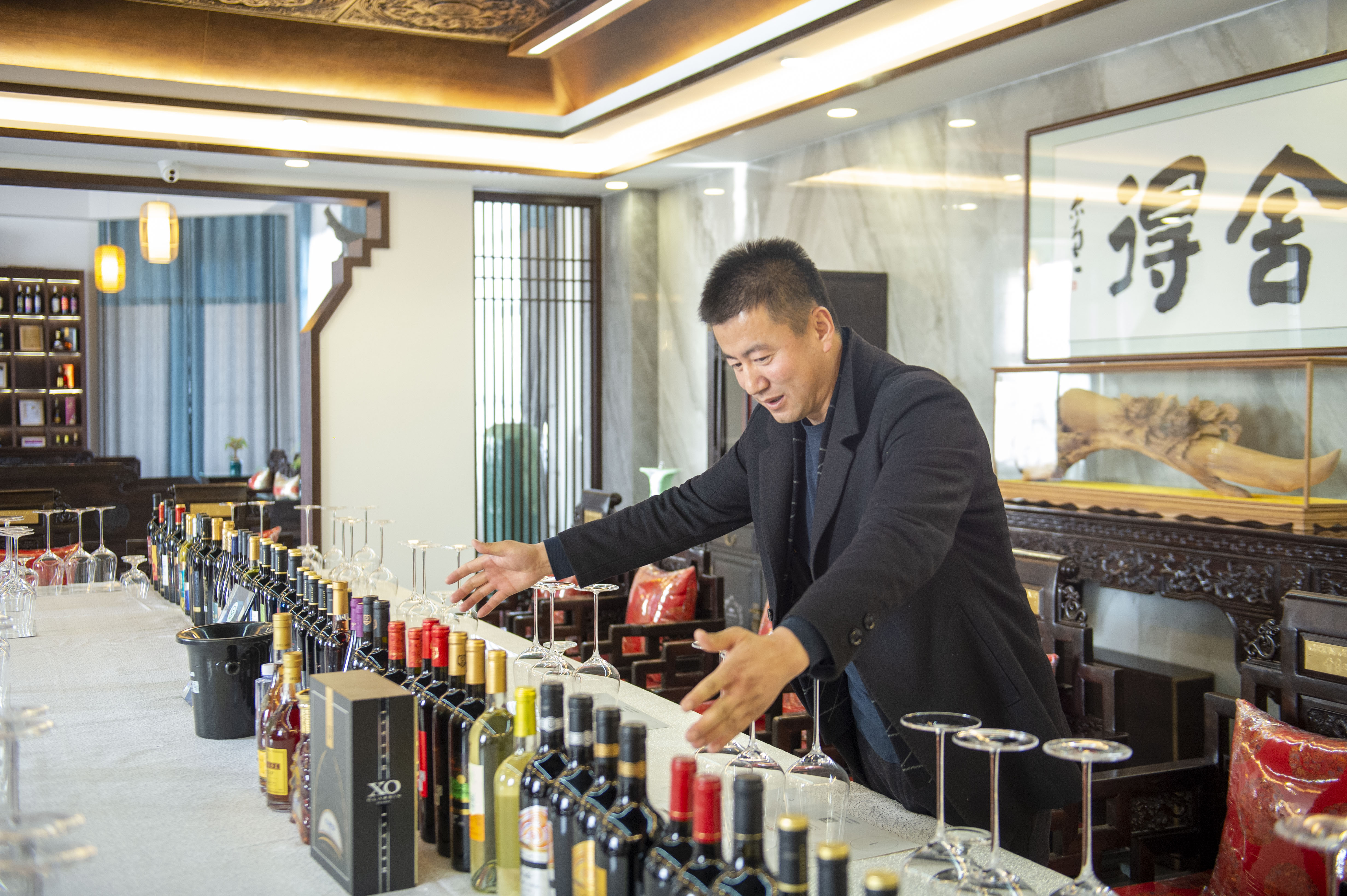 每售出一瓶酒,李财给大家三角钱提成。“现在都是现代化生产设备,活儿轻,一年收入两万多元,离家近,方便照顾孩子。李总还经常鼓励我们,特别好。”酒庄31岁的女工海燕说。
