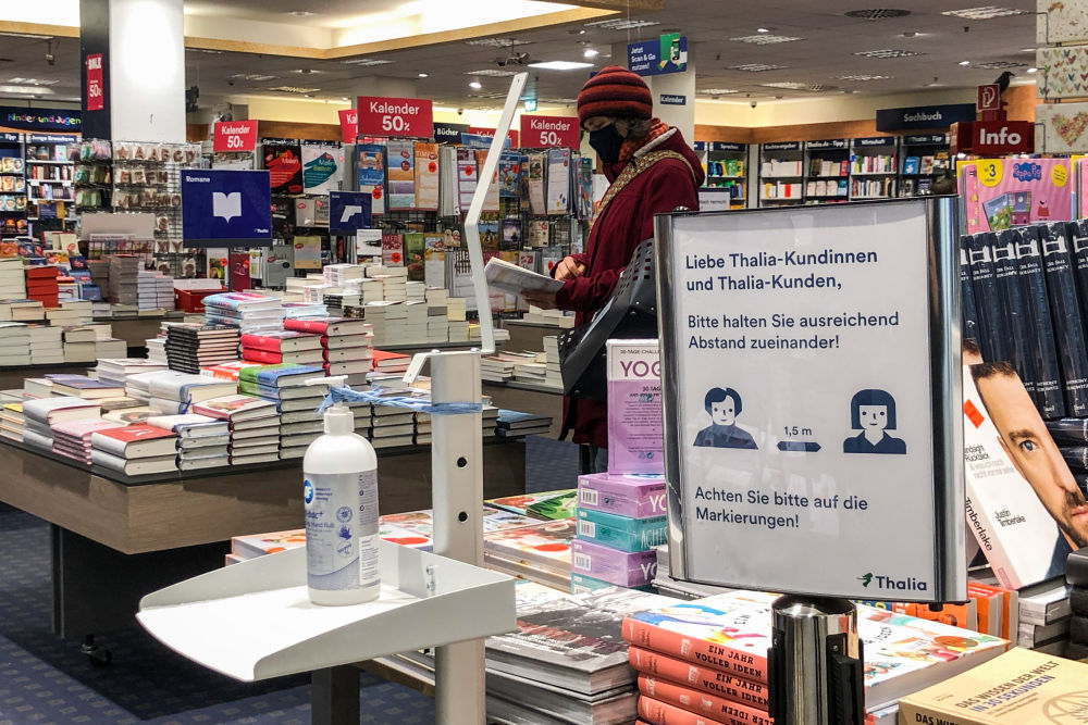 去年12月中旬,德国启动“全面封锁”前,杜斯曼书店门前排起长队,记者等了二十多分钟才进入店内。一问才知,很多人都担心书店关门,于是抓紧时间多买一些书。