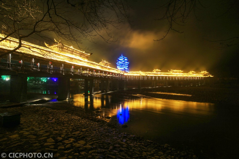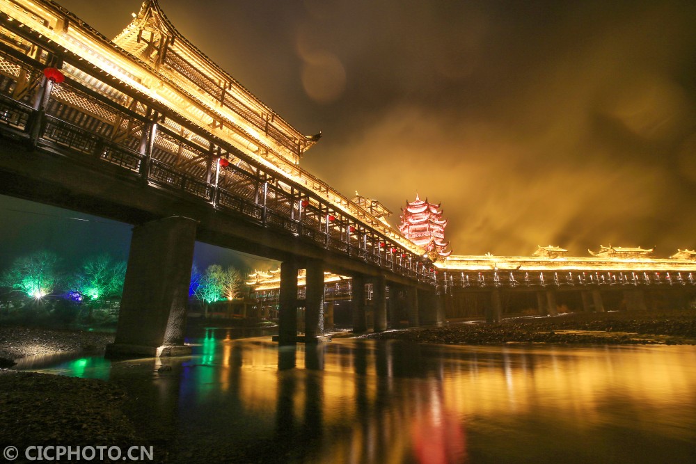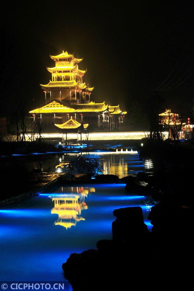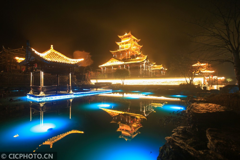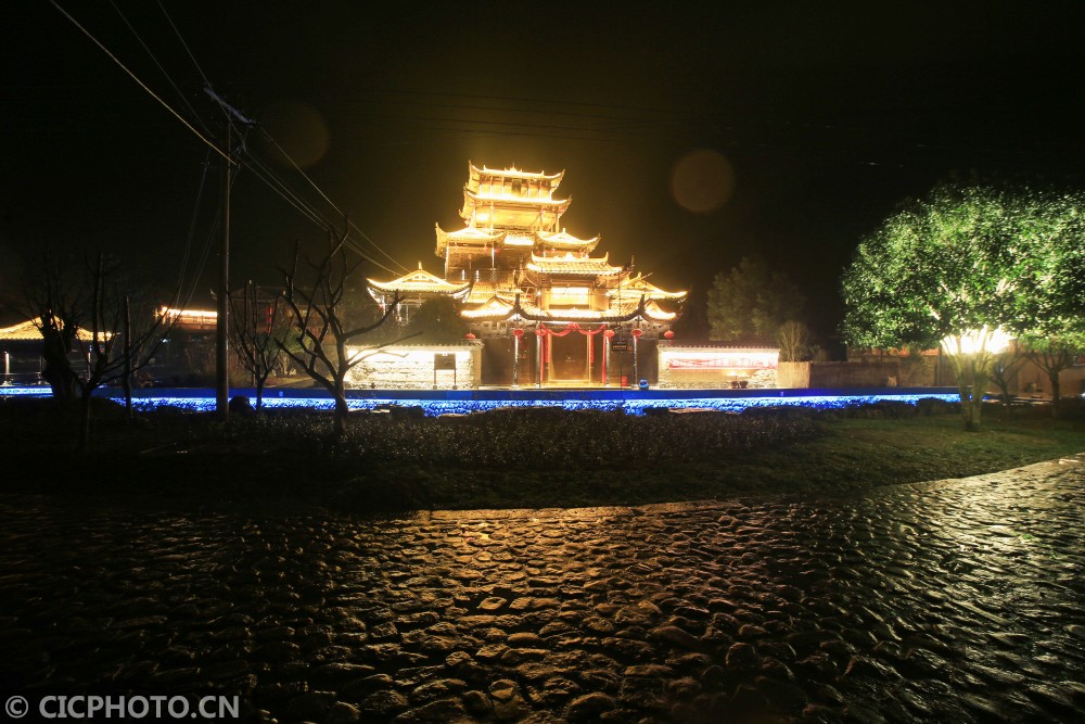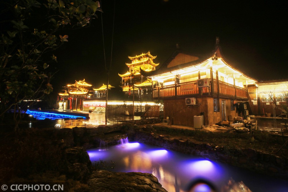 以上图片:2020年1月31日在湖南省湘西土家族苗族自治州龙山县苗儿滩镇捞车河村拍摄的乡村夜景。CICPHOTO/曾祥辉 摄