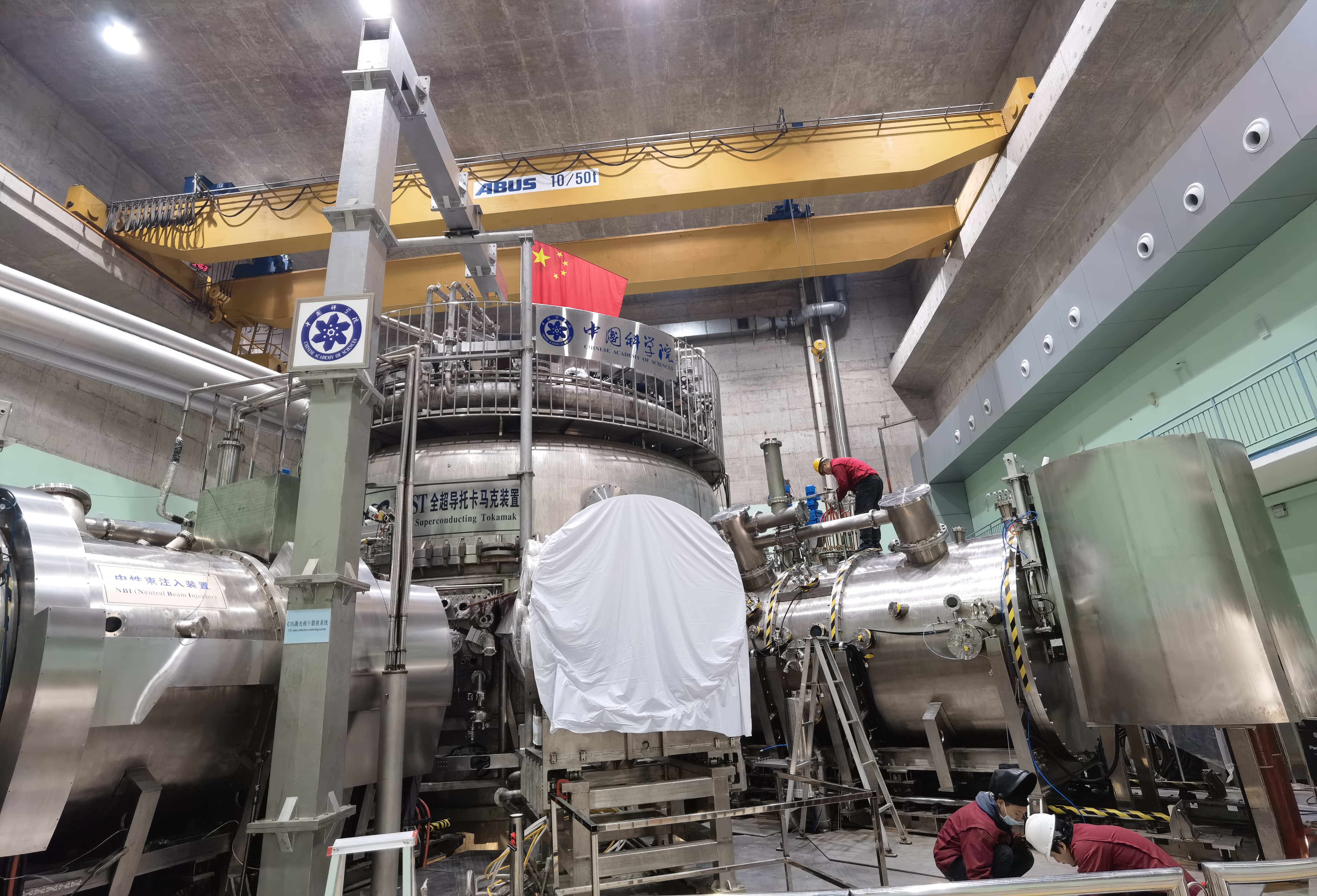 2月2日,“人造太阳”全超导托卡马克装置正在升级改造,为下一轮的实验做好准备。(新华社记者陈诺摄)