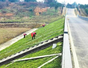 1月29日上午,四川蜀安嘉实实业有限公司项目常务副经理杜元金来到位于眉山市东坡区的白马湖水库大坝,开始了日常巡查。在他不远处,3名身穿统一制服的工作人员正在给大坝外坡清理杂草。
