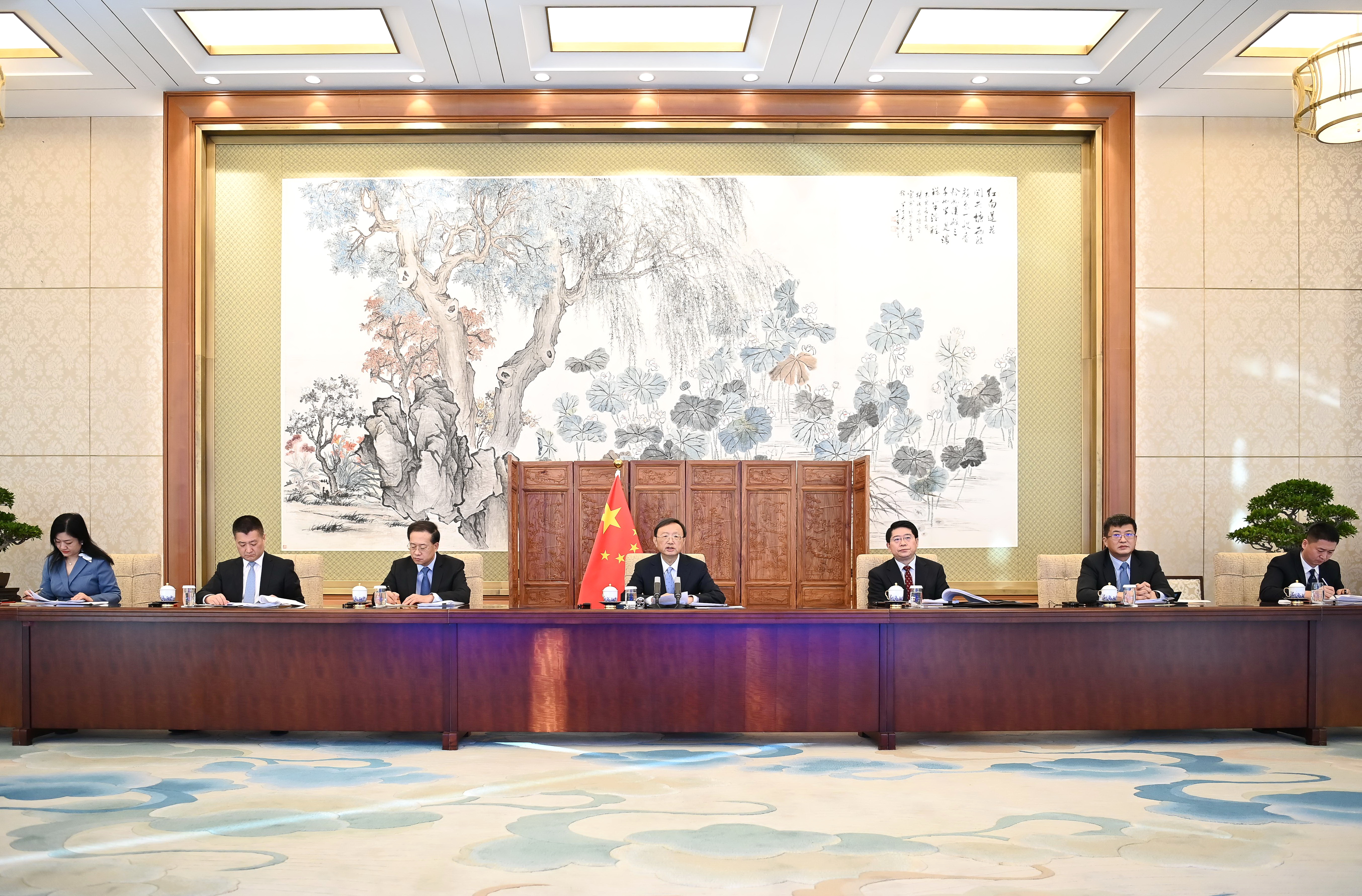 2021年2月2日,中共中央政治局委员、中央外事工作委员会办公室主任杨洁篪在北京同美国美中关系全国委员会举行视频对话。新华社记者李响摄