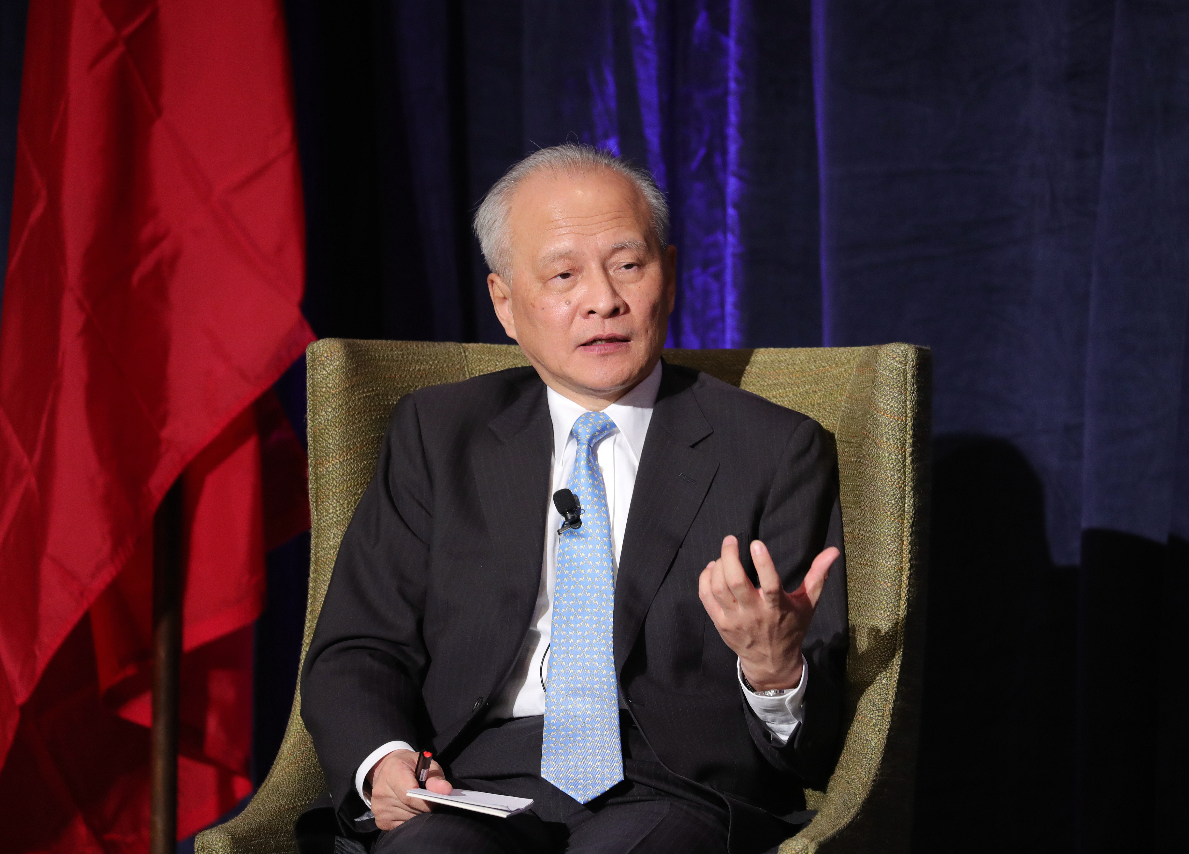 2019年2月8日,在美国密歇根州大急流城,中国驻美国大使崔天凯在中美建交40周年对话会上讲话。崔天凯表示,中美间存在分歧是正常的,重要的是双方增进相互了解和理解,正确判断对方的战略意图。两国关系中合作和互利共赢的主流不应改变。新华社记者汪平摄