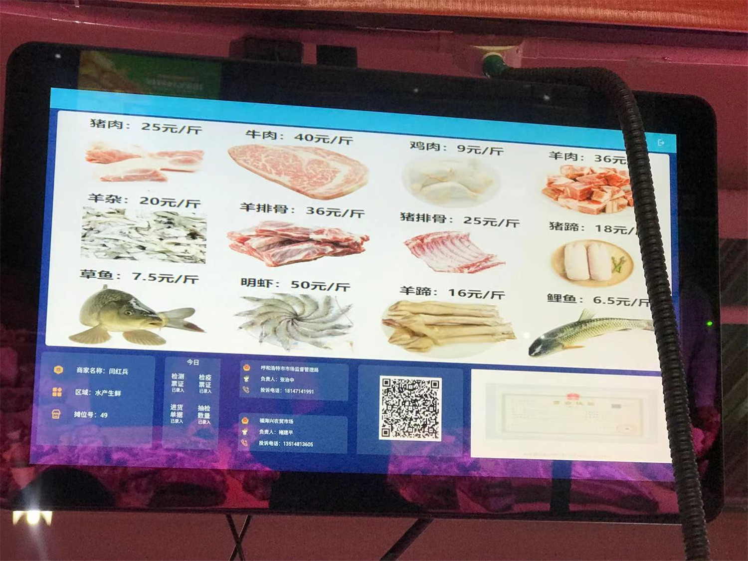 2021年2月3日,“智慧”农贸市场使用显示屏展示商品信息。新华社记者 哈丽娜 摄