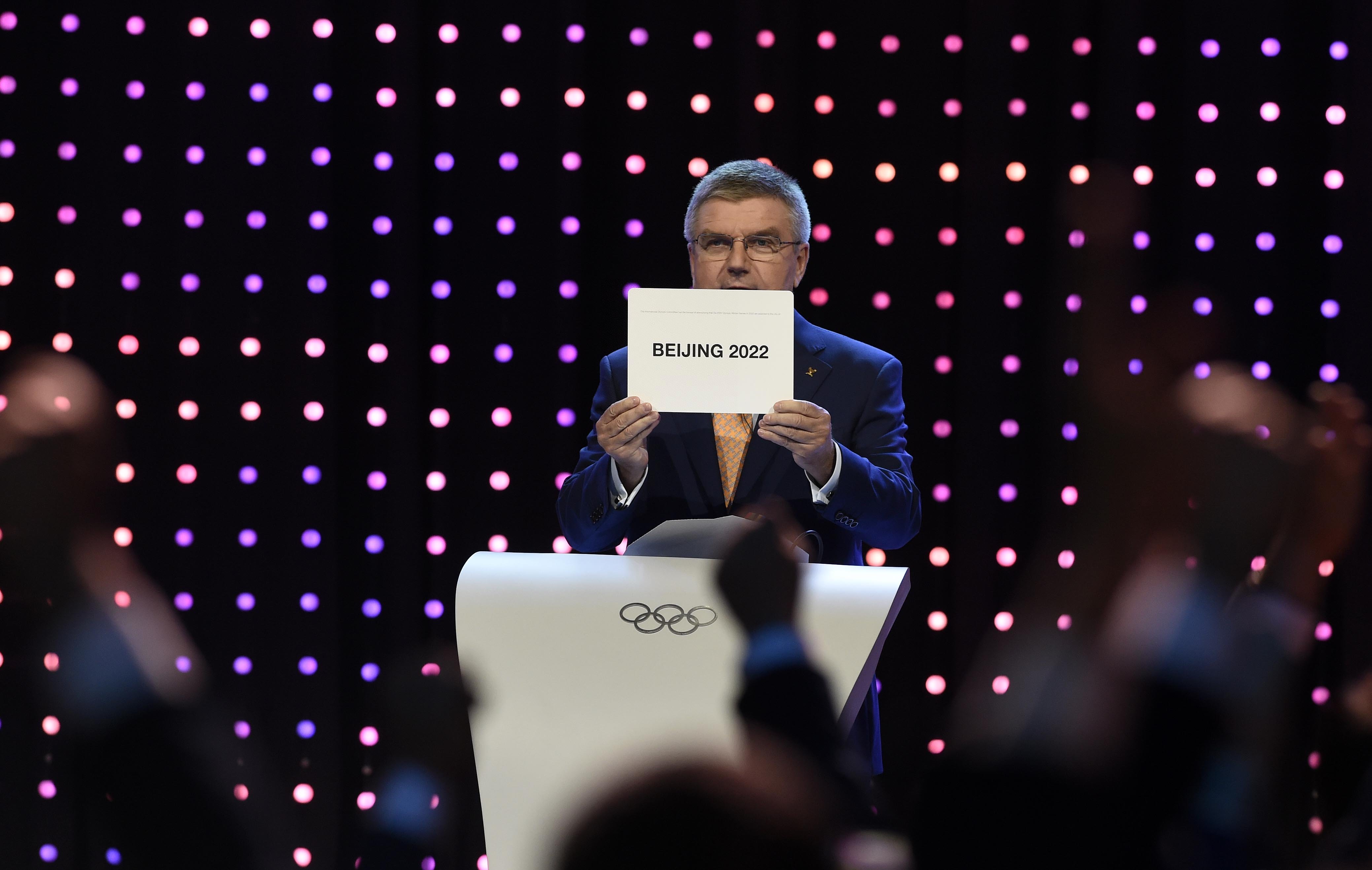 2015年7月31日,在吉隆坡举行的国际奥委会第128次全会上,国际奥委会主席巴赫宣布北京携手张家口获得2022年冬奥会举办权。新华社发(公磊摄)
