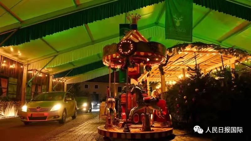 卡卡尔市的圣诞市场建在一座游乐园中,伴随着五彩的灯光和欢快的音乐,在人造雪营造出的欢快氛围中,游客们像往年一样观赏着各式各样的节目。出于防控要求,游客须自驾汽车入场,并且中途不能下车,只能隔着车窗欣赏节目。