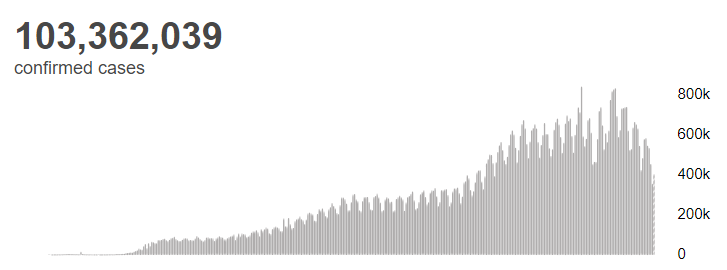根据世卫组织最新实时统计数据,截至欧洲中部时间2月3日15时59分(北京时间2月3日22时59分),全球累计新冠肺炎确诊病例103362039例,累计死亡病例2244713例。2月3日全球新冠肺炎确诊病例新增403263例,新增死亡病例12120例。(总台记者 朱赫)