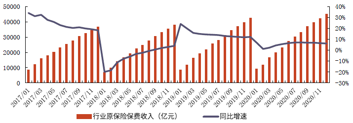2020年保险行业整体保费收入增速放缓数据来源:Wind,光大证券