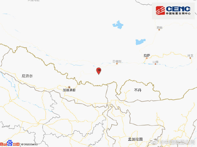 西藏日喀则市定日县发生4.3级地震 震源深度28千米