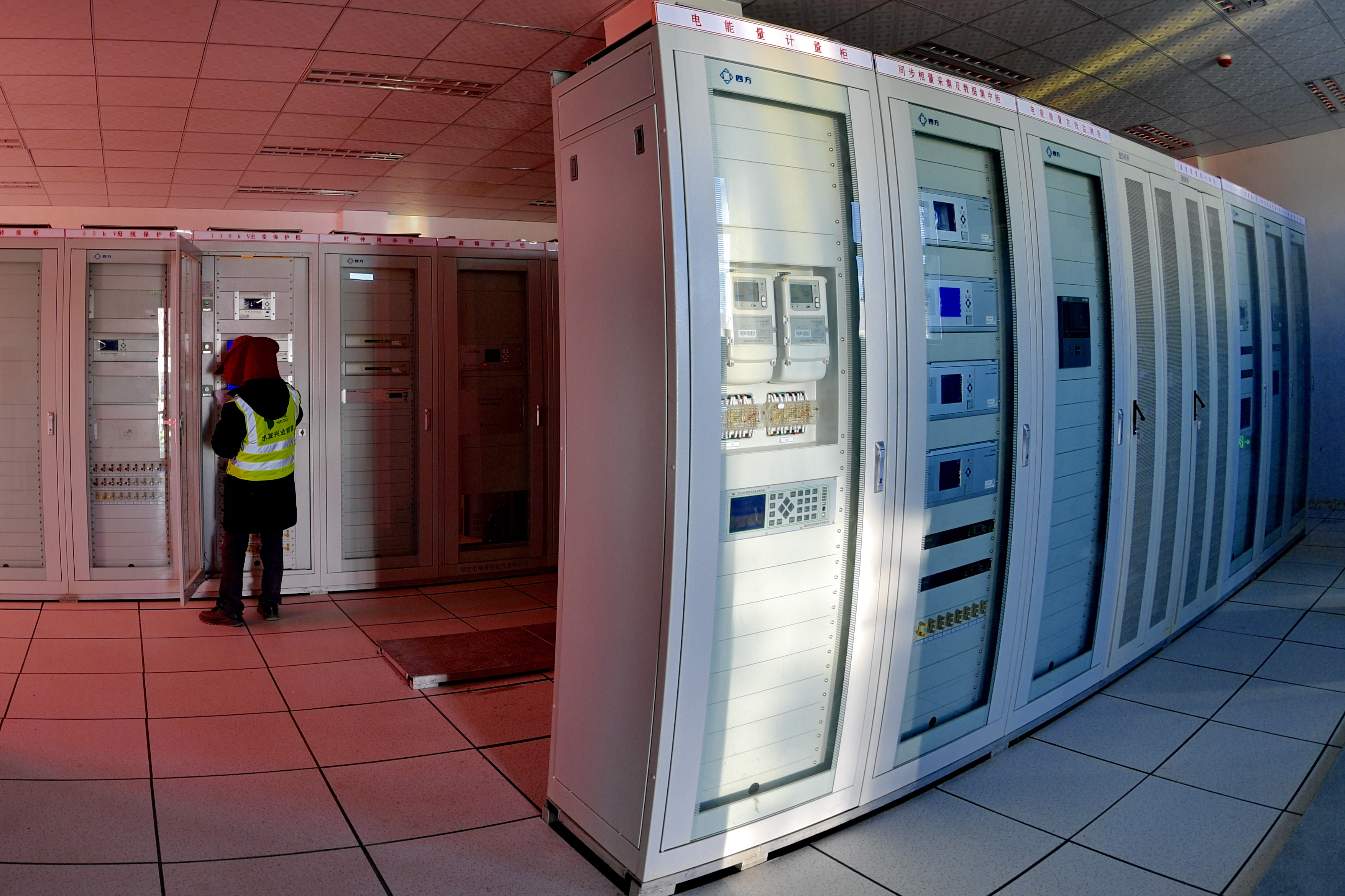2020年12月24日,西藏自治区日喀则市50兆瓦“光伏+储能”综合能源电站在日喀则市江当现代生态产业示范园并网发电。图为技术人员在日喀则市江当现代生态产业示范园50兆瓦光储电站继电保护室调试设备。新华社记者 张汝锋 摄