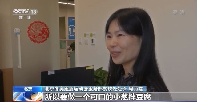 北京冬奥组委运动会服务部餐饮处处长 周丽霞:听起来只有小葱跟豆腐,但事实上里边有盐、香油,你用南豆腐还是北豆腐。从口感上来说它鲜咸又适口,葱香又浓郁,所以要做一个可口的小葱拌豆腐也不是那么容易。重要的目的就是因为两地三赛区,我们一定要统一标准。
