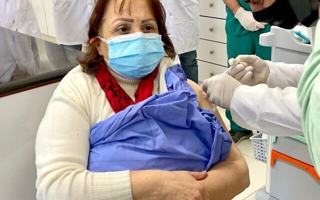 △当地时间2月3日,巴勒斯坦卫生部长马伊·凯拉接种了第一剂新冠肺炎疫苗。(图片来自网络)