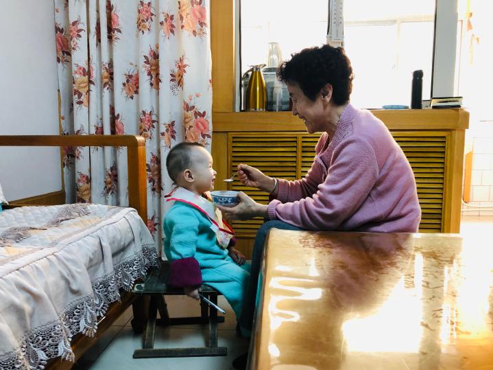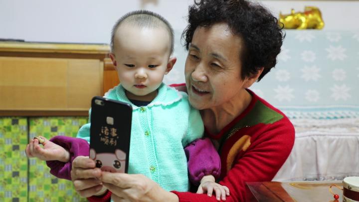 65岁的周桂珍和不到两岁的外孙女生活在甘肃省白银市,两个女儿分别在济南和上海工作,三代人常年聚少离多。
