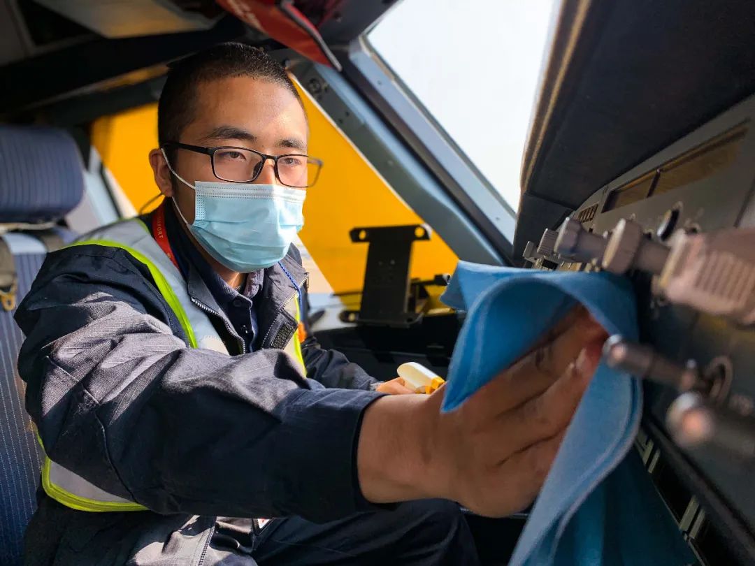 在短停更换机组空档期间,消杀人员需要对飞机驾驶舱手持话筒、座椅扶手、面板旋转按钮以及操纵杆等飞行员经常接触的部位进行消毒清洁,确保卫生无死角,为飞行人员提供安全舒适卫生的驾驶舱环境。