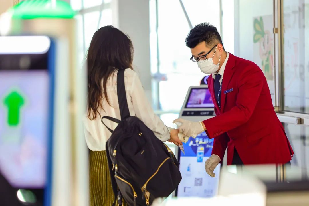 疫情期间,各大机场严格按要求落实旅客实名购票、健康码查验、快速测温、客流引导、佩戴口罩、手部消毒以及机上对号入座等旅客防疫工作,确保旅客出行安全顺畅。