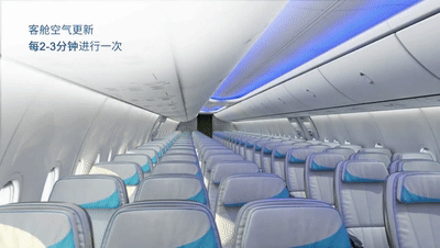在飞机空调系统的作用下,客舱空气约每3分钟更换一次,比其他室内环境流速高得多,乘客所能呼吸的空气量大约是所需要呼吸空气量的80倍。