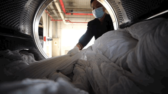 最后,洗涤工人会在进行折叠工序时,对卧具再次检查,如果清洁得不够会被挑出返洗,返洗过后仍不达标的,则直接报废。