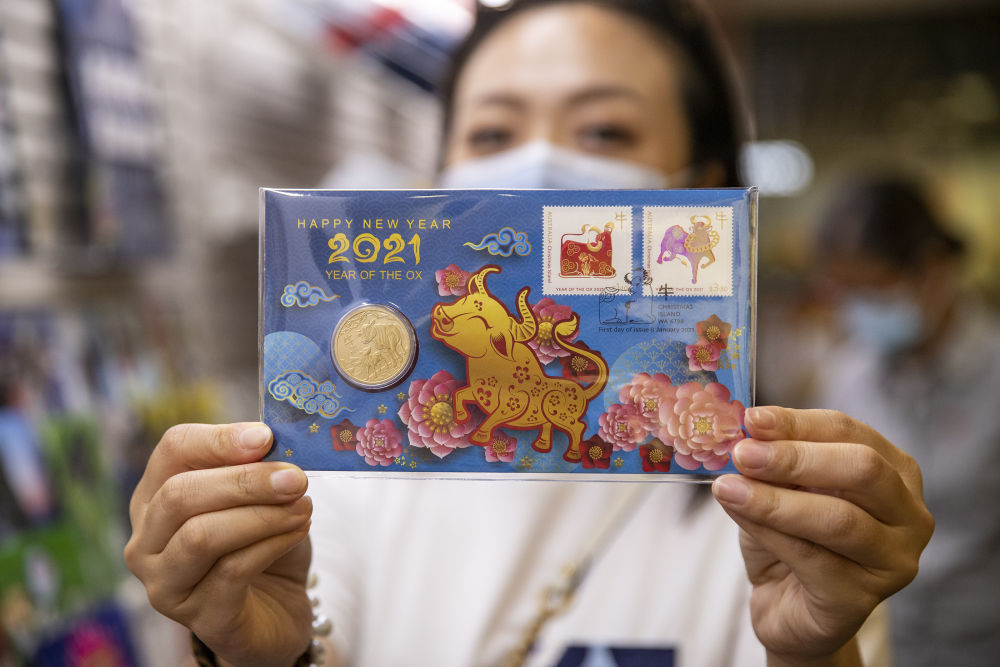 澳邮政局表示,农历新年是亲朋相聚庆祝、互赠礼物的时节,现在由于疫情,聚会和旅行都变得不可控,希望这些设计精美的牛年生肖邮票和纪念币能成为大家互赠礼物的选择。