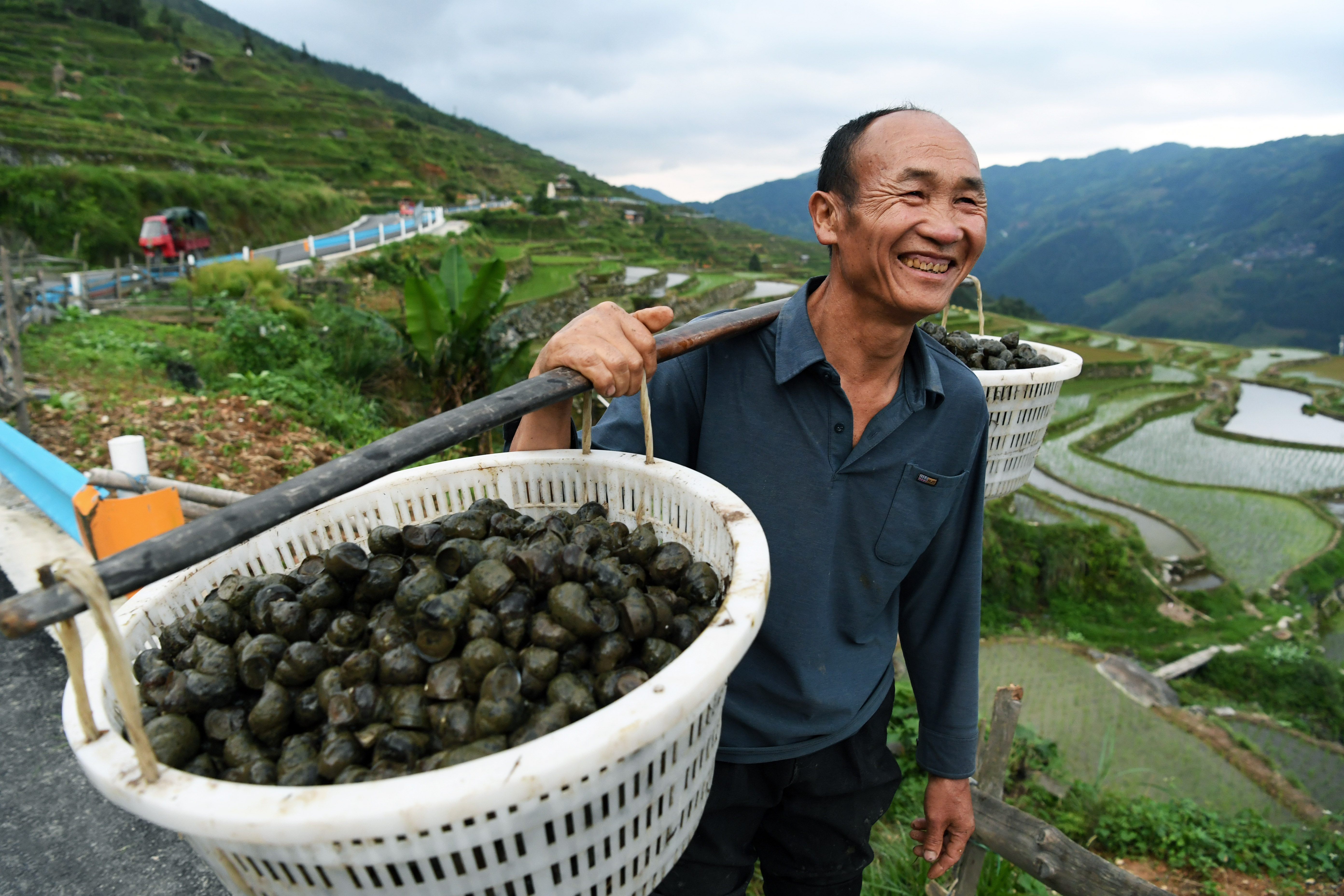 贵州省从江县加榜乡加车村的村民在搬运种螺。(2010年5月26日摄)