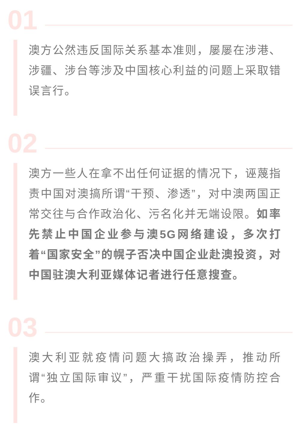 让我们一起历数一下澳方在涉华问题上采取的一系列错误言行——