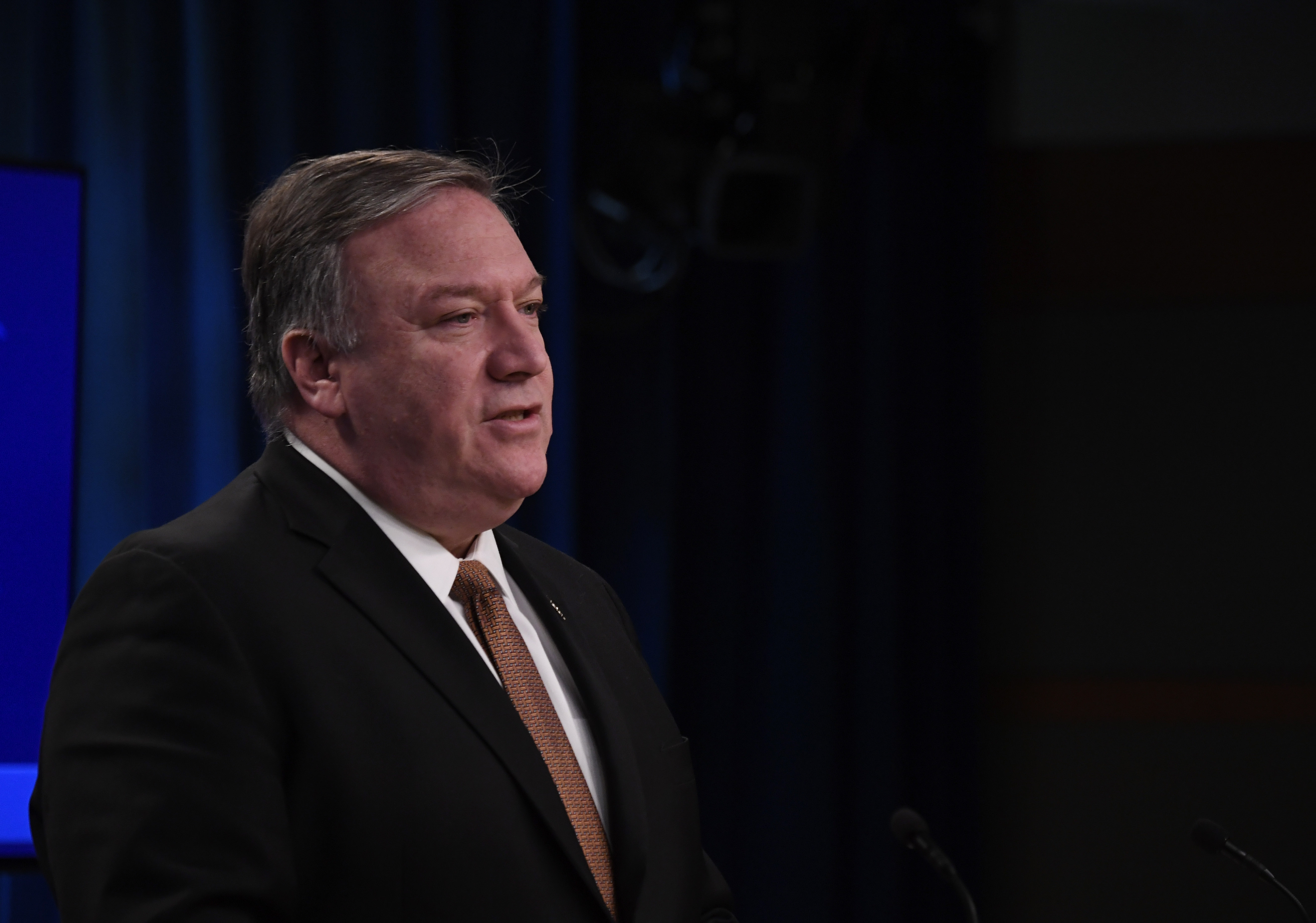 这是2019年3月15日在美国华盛顿拍摄的时任美国国务卿蓬佩奥的资料照片。(新华社记者刘杰摄)