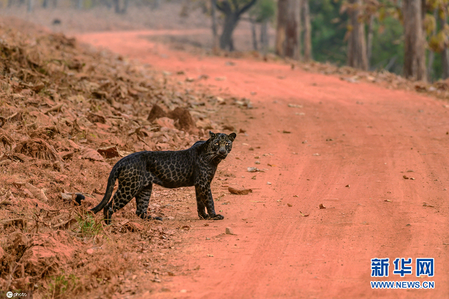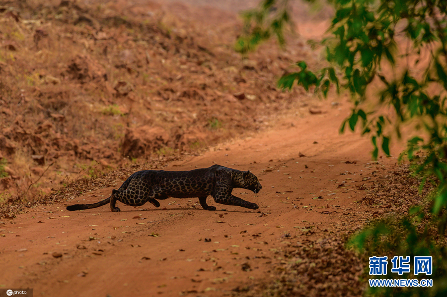 印度国家公园发现罕见黑豹