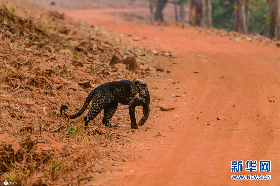 2月4日,印度马哈拉施特拉邦,塔杜巴国家公园内发现了一只极为罕见的雄性黑豹。(图片来源:东方IC)