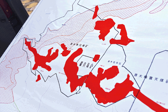 2020年10月30日,汝箕沟矿区煤田火区分布图(局部)。