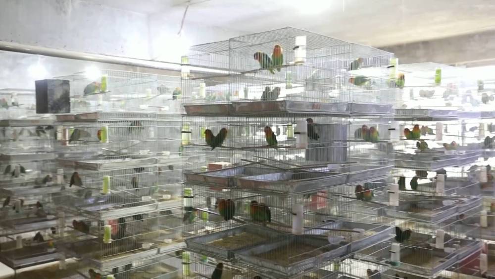 来到商丘市梁园区宁楼村,记者在村民王翠兰家院外就能听到此起彼伏的鸟鸣声。三层高的房子,一楼住人,二三楼堆满了鸟笼,饲养着包括费氏牡丹鹦鹉在内的多个品种,但有的鸟笼已经空了。