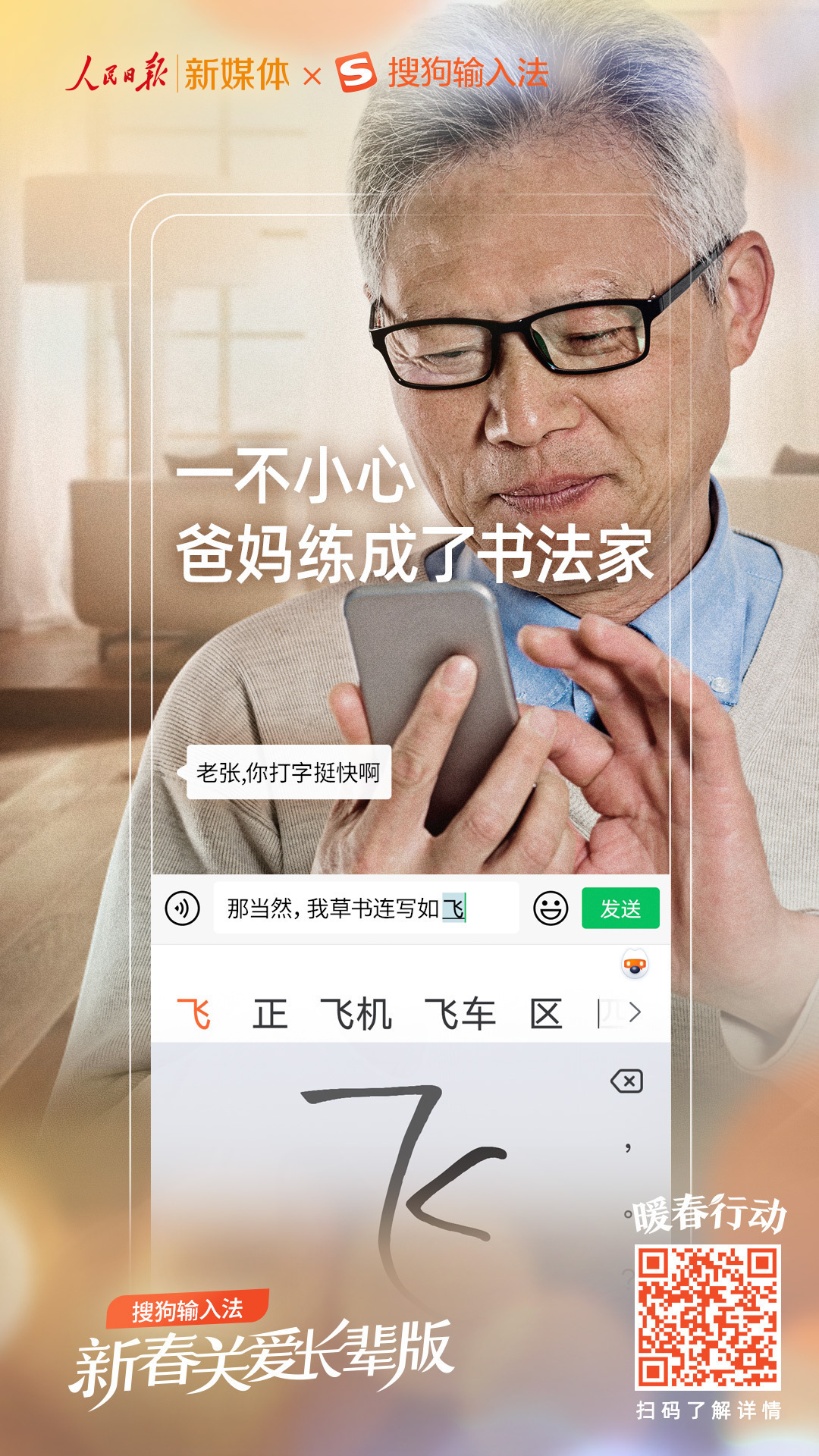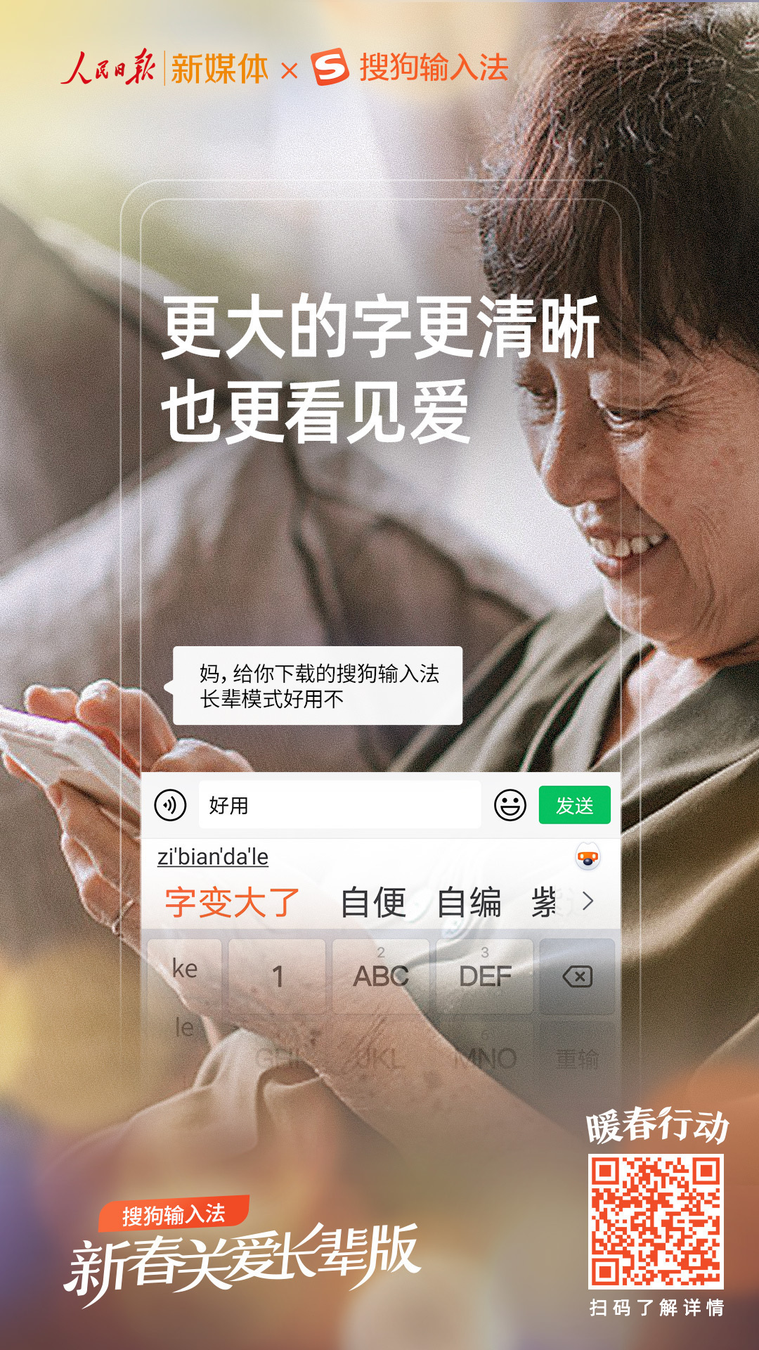 搜狗输入法负责人表示,此次与人民日报新媒体联合创意策划并发布的关爱长辈特别版,是践行“科技向善”、解决老年人运用智能技术困难的有益尝试。相信伴随越来越多的互联网应用加入到这一行列中,一个对老年人更尊重、更友好的数字社会将会到来。
