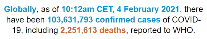 世卫组织:全球新冠肺炎确诊病例超过1亿363万例