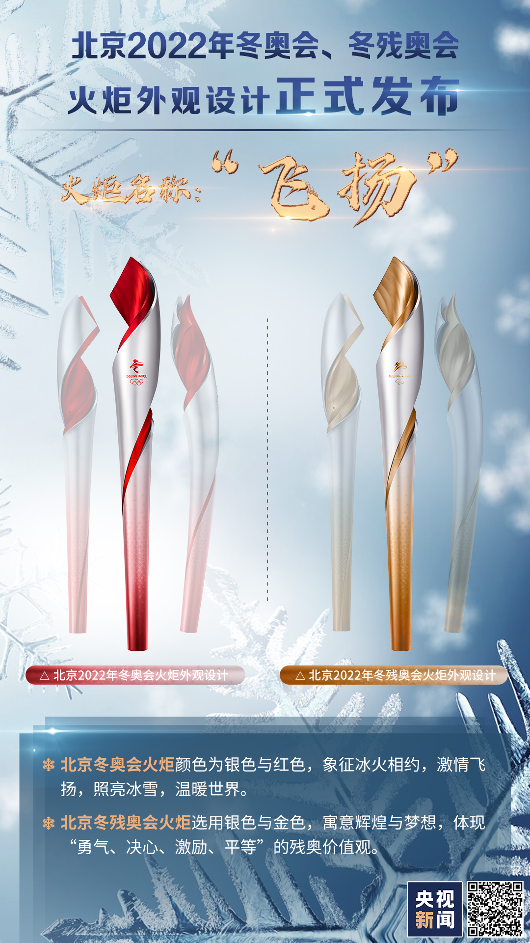 北京冬奥会火炬外形极具动感和活力,颜色为银色与红色,象征“冰火相约,激情飞扬,照亮冰雪,温暖世界”。北京冬残奥会火炬则选用银色与金色,寓意辉煌与梦想,体现“勇气、决心、激励、平等”的残奥价值观,火炬最下方一圈刻有“北京2022年冬残奥会”全称的盲文。