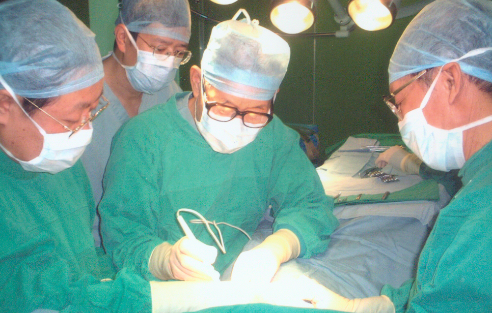 2003年12月25日,辛育龄为中日友好医院教授做肺肿瘤切除术(图片由中日友好医院提供)