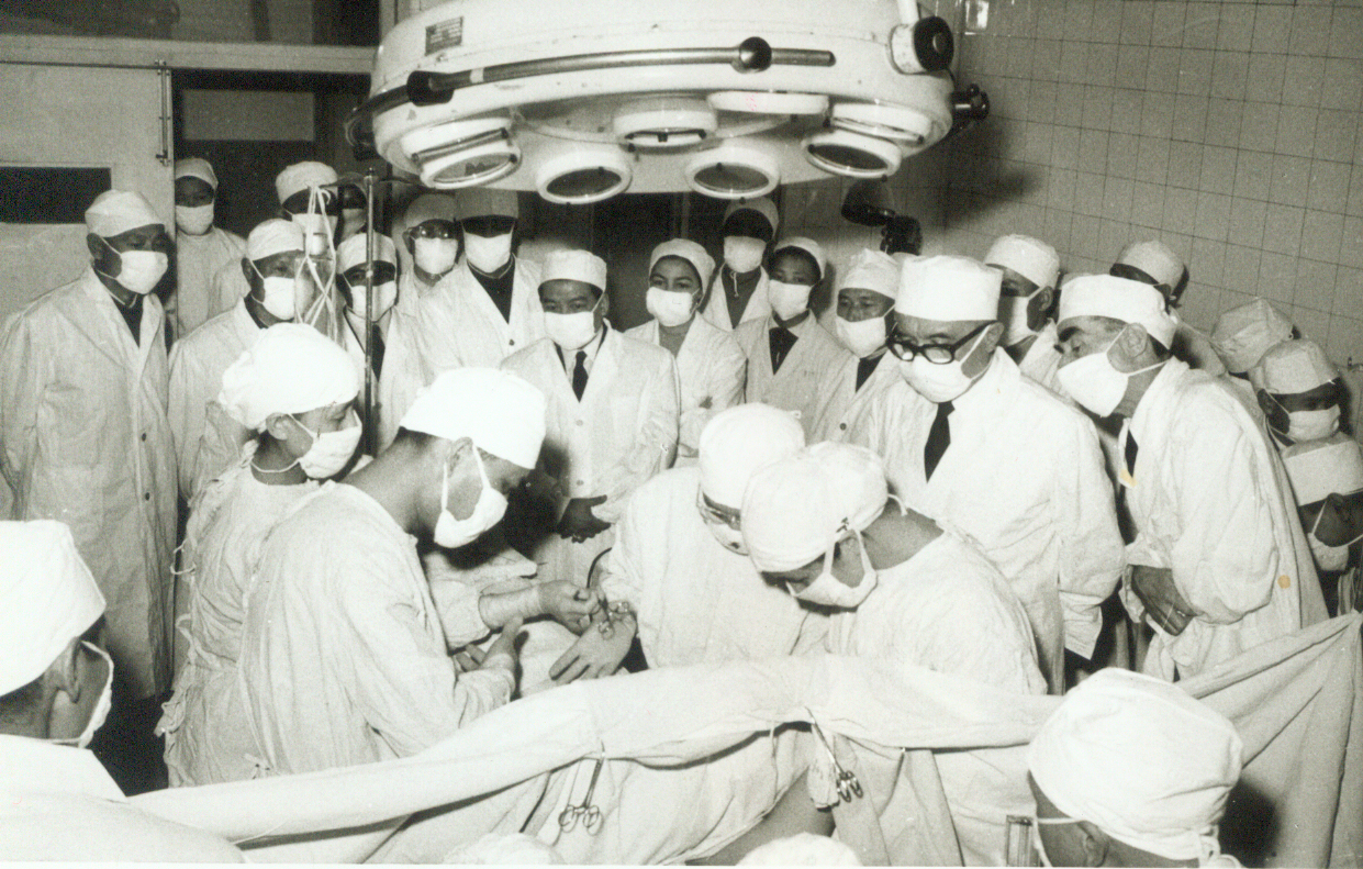 1972年,辛育龄团队接待访问团参观针麻肺切除手术(图片由中日友好医院提供)