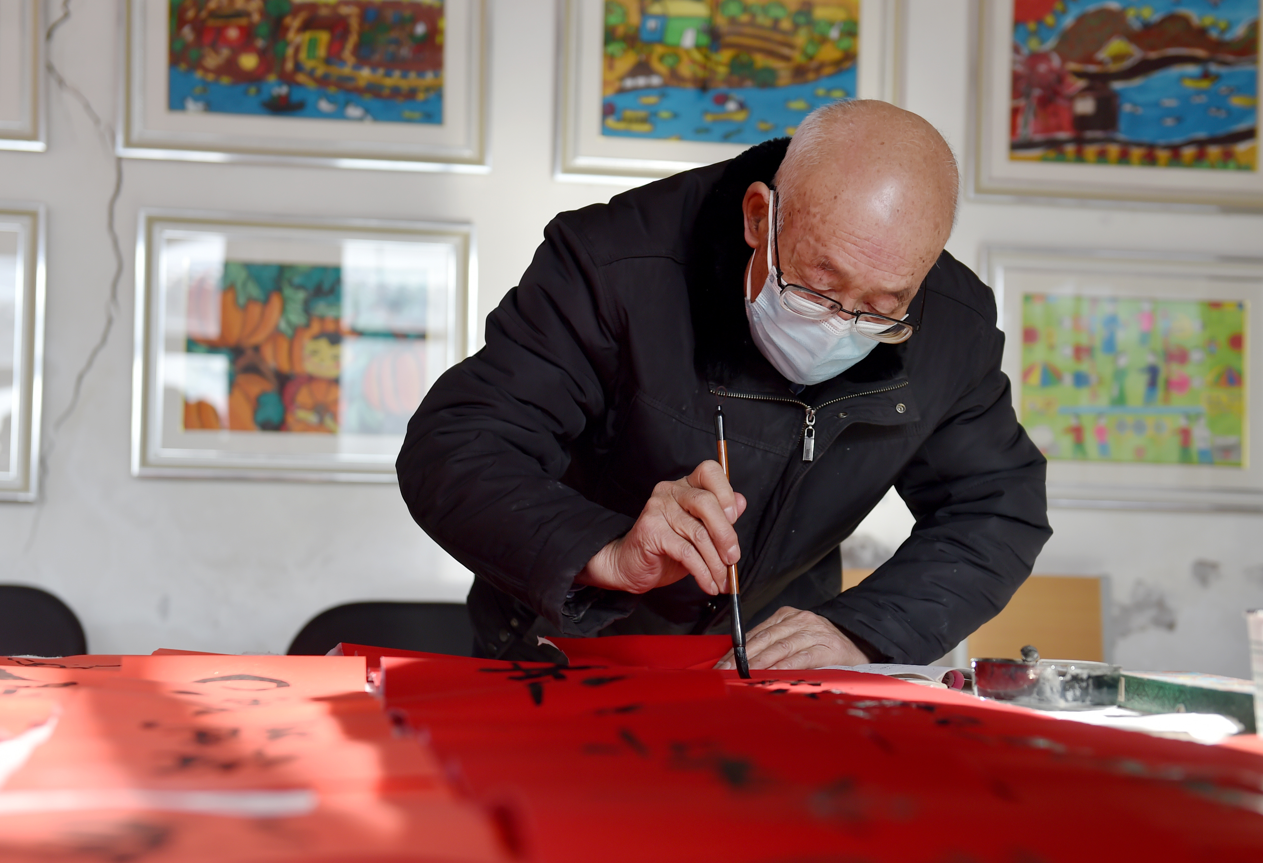 沈家河民俗文化村位于宁夏固原市原州区,这里有剪纸、刺绣、秦腔、农民画、皮影等10多项非遗项目,是远近闻名的“非遗村”。因为有写春联的传统,村里过年从不买对联,从小就爱写毛笔字的江玠已经给左邻右舍写了50多年春联。