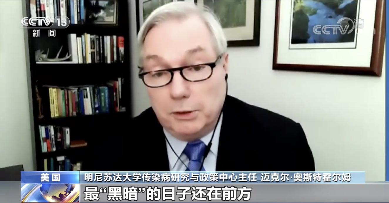 明尼苏达大学传染病研究与政策中心主任 迈克尔·奥斯特霍尔姆:我认为这场疫情中最“黑暗”的日子还在前方,这么说是因为这些新冠病毒变异株。这些变异毒株正在给我们带来极大的挑战。