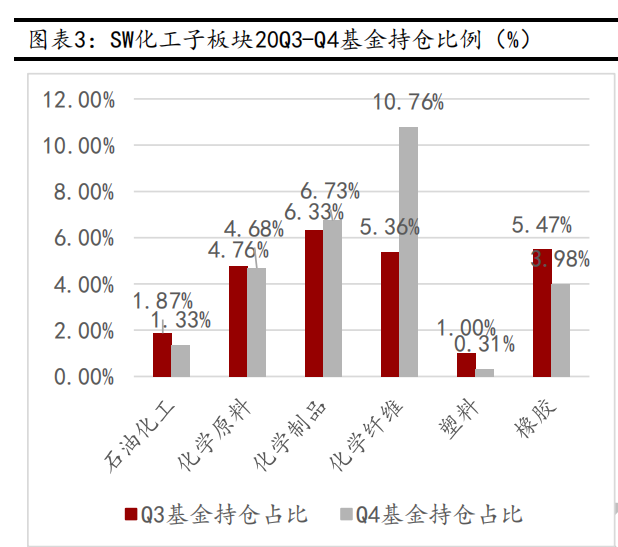 申万化工子板块2020Q3-Q4基金持仓比例(%) 资料来源:Wind、万联证券研究所