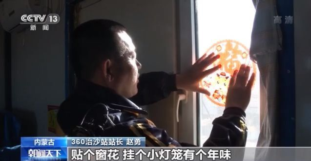 360治沙站站长 赵勇:贴个窗花,挂个小灯笼,有个年味。晚上准备把临近几个站的人都叫来开个联欢会,红火红火。