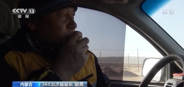 360治沙站站长 赵勇:因为我们中午回不去,就从车上带点干粮,现在马上还得去修理防沙网格。因为在地上钉不下桩子,就得赶中午这一会儿暖和点,地软了再去钉桩子。