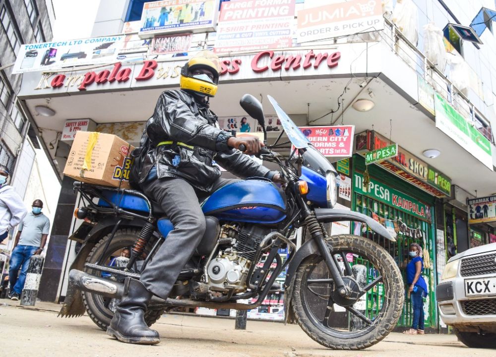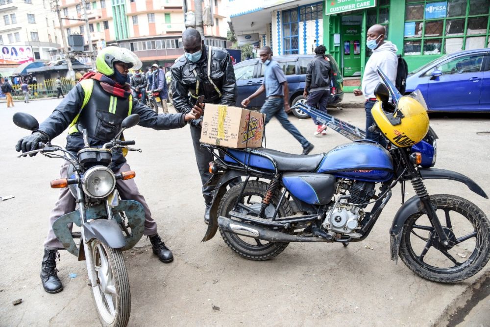 2021年1月22日,在肯尼亚首都内罗毕,骑手摩西·奥蒂诺准备出发给客户送货。新华社发